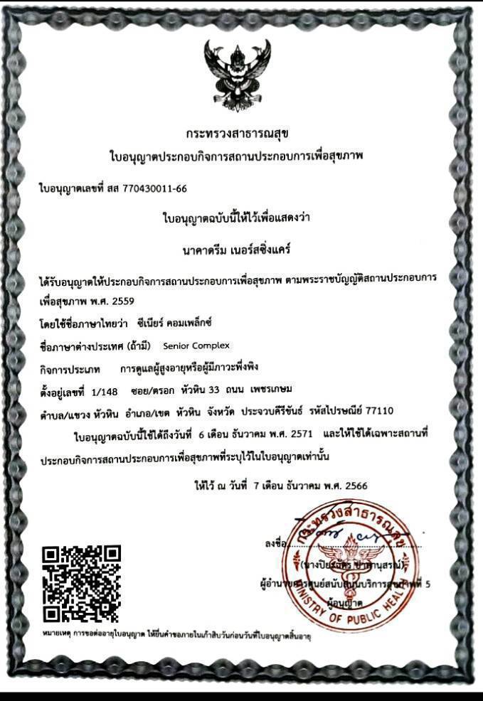 ได้รับอนุญาตให้ประกอบกิจการสถานประกอบการเพื่อสุขภาพจากกระทรวงสาธารณสุข